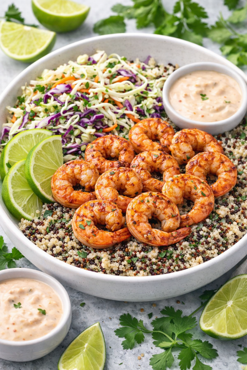 Baja Shrimp Bowl with Lime Slaw & Tricolor Quinoa GF