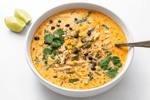 A comforting soup made with premium Bell & Evans chicken, smoky poblano peppers, black beans, and sweet corn, simmered in a creamy coconut broth and finished with fresh lime and cilantro. Rich, smooth, and flavorful without being heavy — the perfect nourishing meal for any time of day.